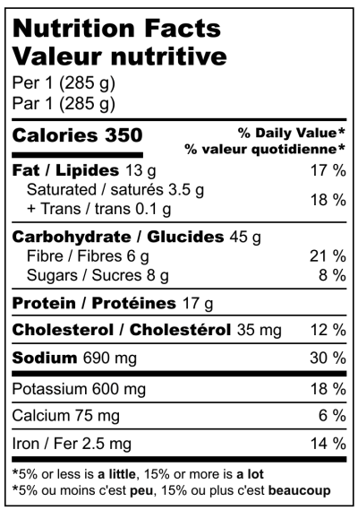 350 CALORIES, 17 GRAMS OF PROTEIN, 6 GRAMS OF FIBRE.