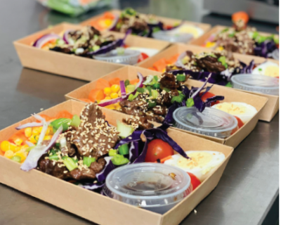 SUCCULENT GRASS-FED BEEF MARINATED OVERNIGHT IN OUR HOMESTYLE TERIYAKI SAUCE. THE NOTES OF GINGER TOGETHER WITH THE SWEET AND SPICY TANGY FLAVOR MAKE EVERY BITE POP. THE DISH IS SERVED WITH FRESH SEASONAL VEGETABLES ON A BED OF QUINOA AND BROWN RICE. 330 CALORIES, 18 GRAMS OF PROTEIN AND 4 GRAMS OF FIBER.