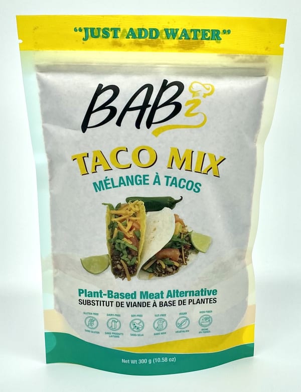 TACOS AREN’T JUST FOR TUESDAYS ANYMORE. WITH OUR PLANT-BASED MEAT ALTERNATIVE TACO MIX, YOU CAN ENJOY TACOS EVERY DAY! OUR EASY-TO-PREPARE TACO MIX HAS ALL THE SEASONINGS; JUST ADD WATER, WINE, EVEN TEQUILA! MIX, LET SIT (REFRIGERATED), HEAT AND SERVE. YOU’LL BE EATING HEALTHY, PLANT-BASED TACOS IN NO TIME! NOT A VEGETARIAN/VEGAN? THAT’S OKAY BECAUSE YOU CAN ADD TACO MIX TO HAMBURGER MEAT FOR ADDED FIBER, PROTEIN AND IRON.