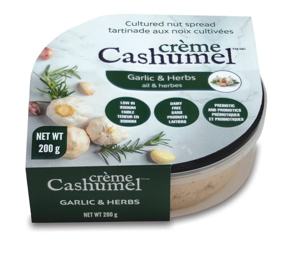 MOVE OVER CREAM CHEESE – HERE COMES CREME CASHUMEL. THIS SPREAD IS RICH AND CREAMY, WHILE LOW IN SODIUM AND FREE FROM PRESERVATIVES, ARTIFICIAL COLOURS AND FLAVOURS. MAKES FOR A GREAT ADDITION TO ANY BREAKFAST BAGEL, OR SPREAD FOR CRACKERS.
